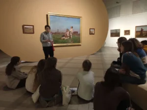 Spotkaliśmy się na osiedlu Lecha, skąd ruszyliśmy tramwajem, do muzeum narodowego w Poznaniu. Na miejscu dołaczyła do nas pani przewodnik, która opowiadała nam o oglądanych przez nas obrazach. Później dostaliśmy karty pracy, na których były różne zadania, mieliśmy np. dopasować przysłowia do poszczególnych obrazów. Na koniec dostaliśmy czas na samodzielne zwiedzanie. Wycieczka była ciekawa, niesamowicie było zobaczyć prawdziwe obrazy słynnego malarza.