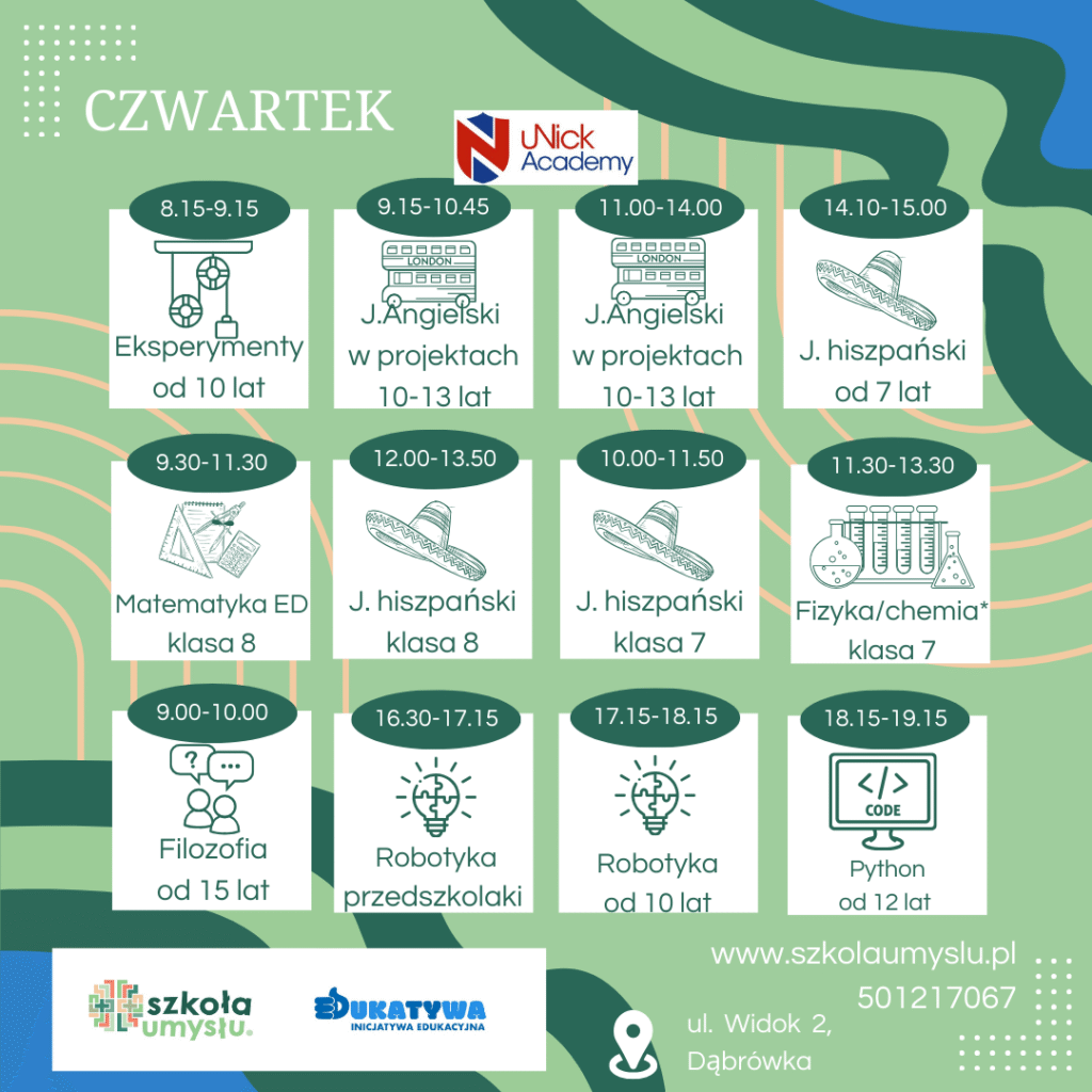https://szkolaumyslu.pl/grafik-zajec/. Serdecznie zapraszamy!